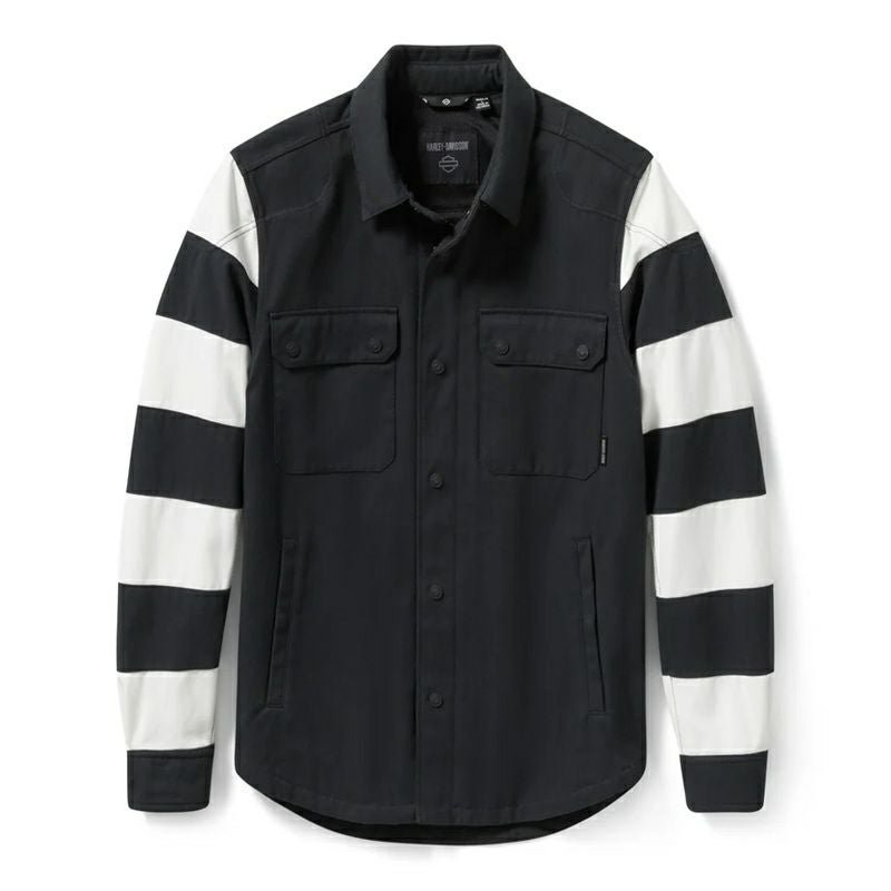 本メンズ用モーターサイクルシャツジャケットは、摩耗・引裂・縫い目強度要件を満たす試験・認証済み(詳細は下記参照)。