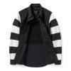 デザイン詳細:袖ストライプ/隠しスナップダウンカラー