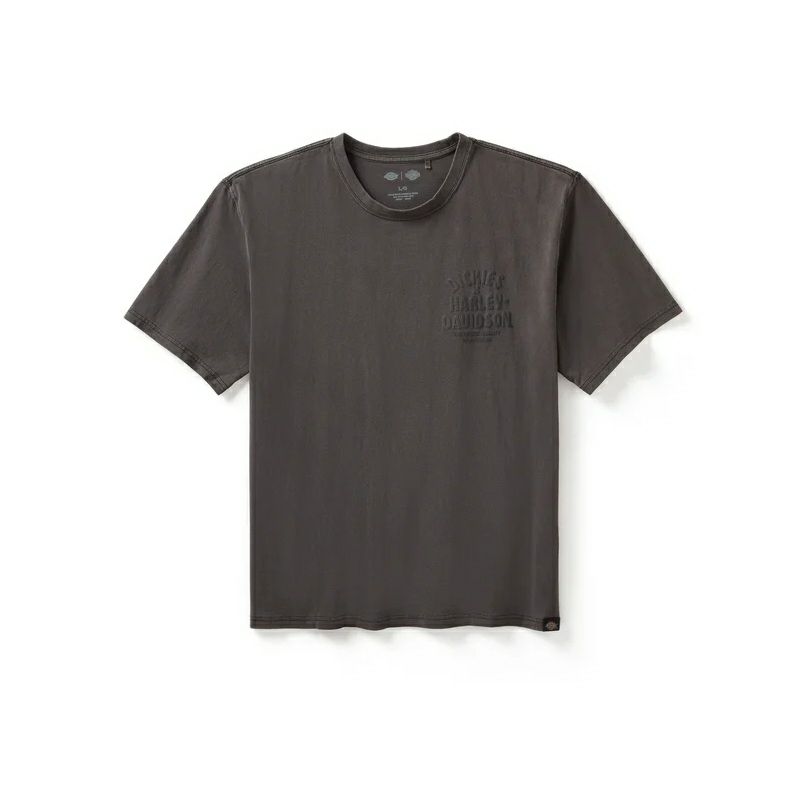 ヘビーピグメントウォッシュにより、独特な色合いと濃淡のバリエーションが生まれ、パフプリントされたグラフィックにはディストレス加工が施されています。