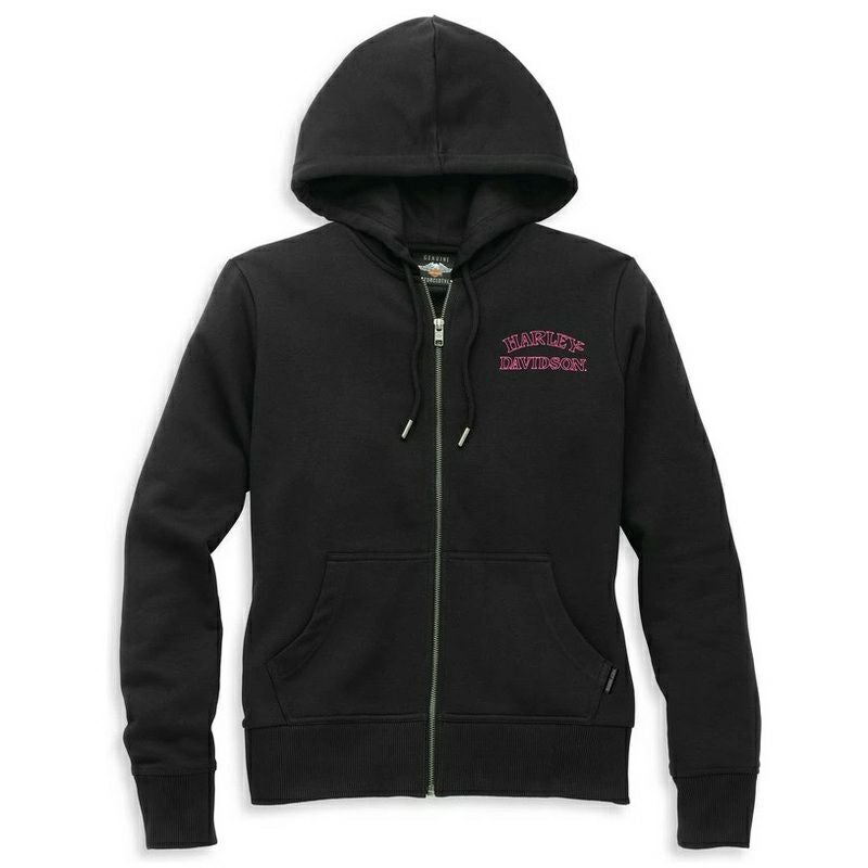 レディース ラインストーン ウィリーG スカル ジップフロント フーディー - ブラック。